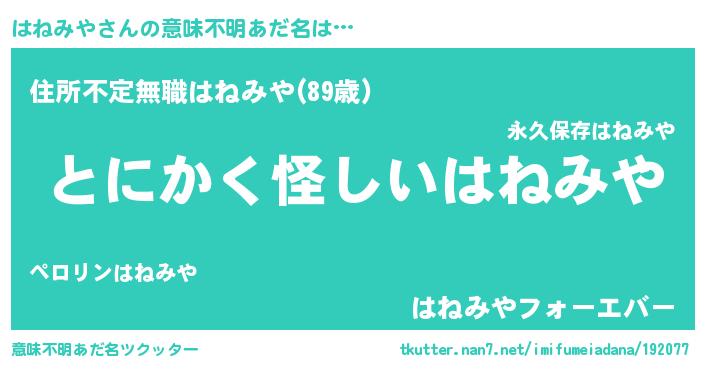 | 伝説のあだ名 | 『解き放たれた遊び人はねみや』 |