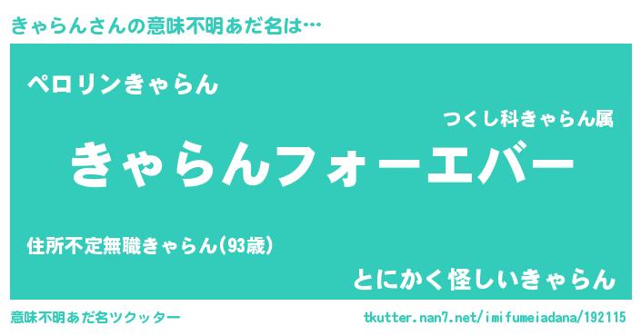 | 欧米人風あだ名 | 『きゃらんクリステル』 |