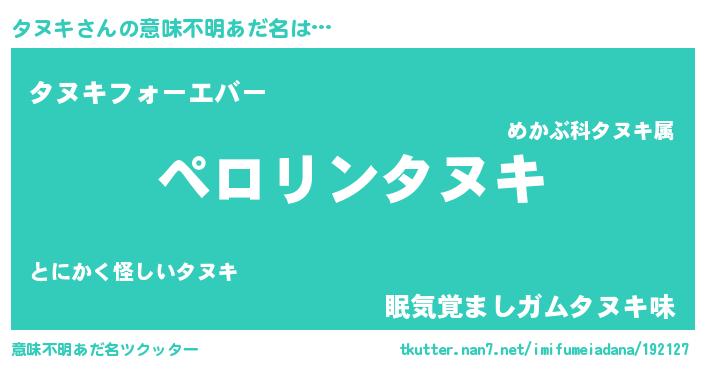 | ファンタジー風あだ名 | 『タヌフェル』『エターナルタヌキー』 |
