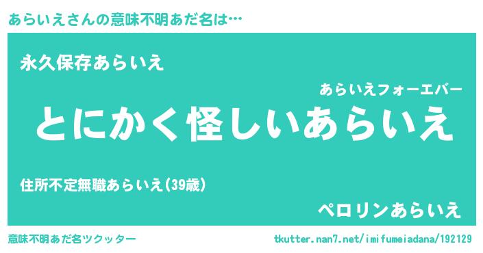 | 欧米人風あだ名 | 『あらいえ・ステッグマイヤー』 |
