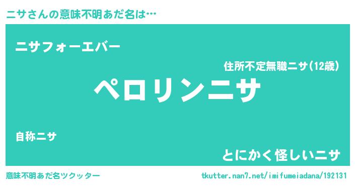 | ポケモン風あだ名 | 『ニサチュウ』『ニサダネ』『ヒニサ』 |