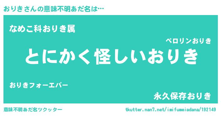 | 女子向けラノベタイトル風あだ名 | 『おりきは平凡を望む』 |