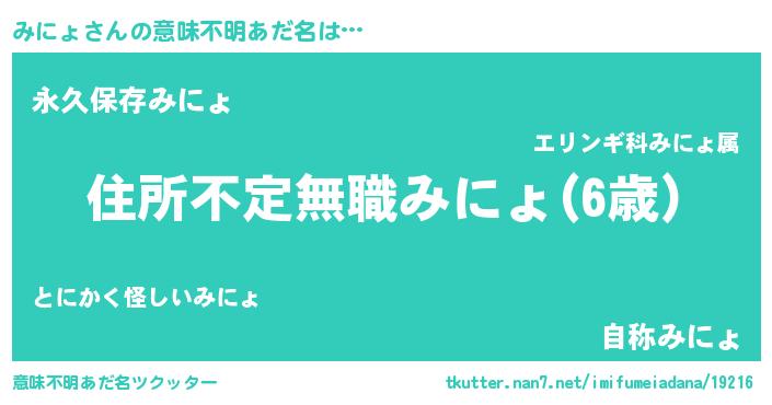 | ヘコむあだ名 | 『みにょ(笑)』『みにっぺ』 |