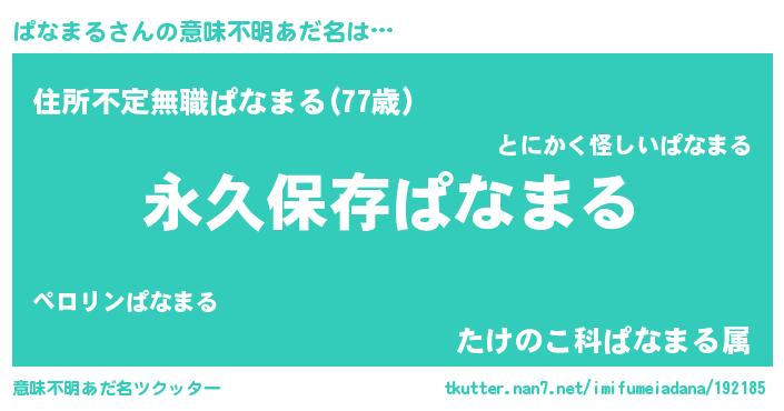 | 男性向けラノベタイトル風あだ名 | 『ぱなまるという概念が存在しない退屈な世界 』 |