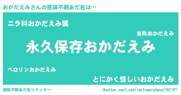 | 欧米人風あだ名 | 『ダルビッシュおかだえみ』 |