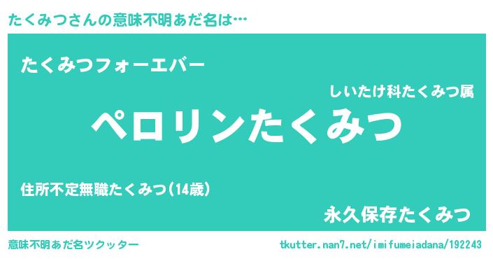 | 胡散臭い通販商品みたいなあだ名 | 『モテモテ間違いなし水晶球…その名も「たくみつ」』 |