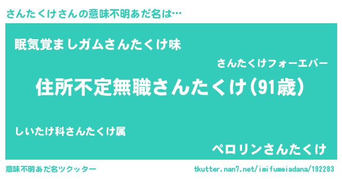 | ヒーロー風カッコイイあだ名 | 『仮面サンダー』『正義の使者さんたくけ』 |