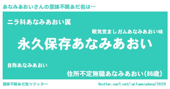 | 欧米人風あだ名 | 『アンジェラ・あなみあおい』 |