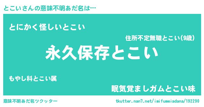 | ヘコむあだ名 | 『とこい(笑)』『とこ太郎』『牛乳』 |