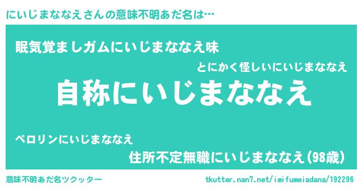 | 男性向けラノベタイトル風あだ名 | 『Re:にいじまななえから始める異世界生活』 |