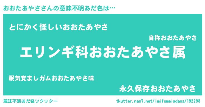 | 男性向けラノベタイトル風あだ名 | 『オオタアヤサスレイヤー』 |
