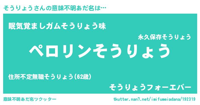 | 胡散臭い通販商品みたいなあだ名 | 『必ず成功するブレスレット…その名も「そうりょう」』 |