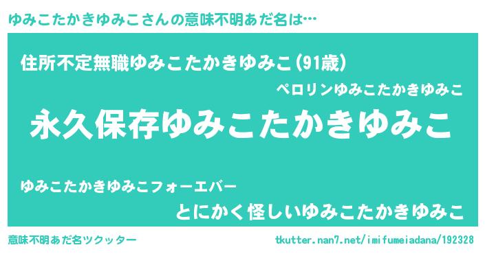 | 胡散臭い通販商品みたいなあだ名 | 『来世でも幸せになれる健康食品…その名も「ゆみこたかきゆみこ」』 |