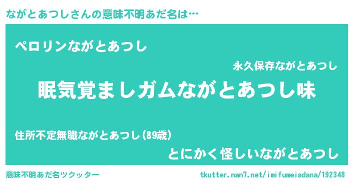 | 女子向けラノベタイトル風あだ名 | 『ながとあつし夫妻のなれそめ』 |