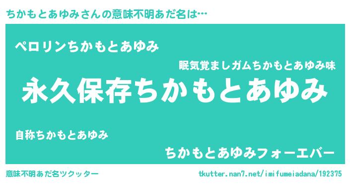 | 胡散臭い通販商品みたいなあだ名 | 『絶対に幸福をもたらす健康食品…その名も「ちかもとあゆみ」』 |