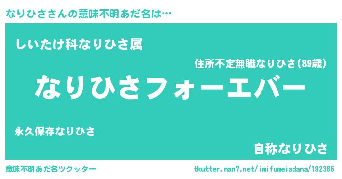 | 肩書あだ名 | 『なりひさ国家主席』『なりひさ大将』 |