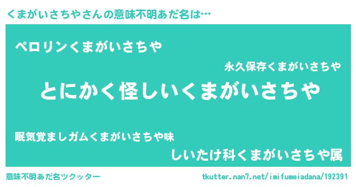 | 自動車の名前っぽいあだ名 | 『クルトマパン』『クマティマ』 |