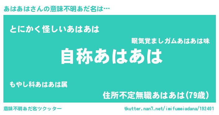 | 男性向けラノベタイトル風あだ名 | 『Re:あはあはから始める異世界生活』 |
