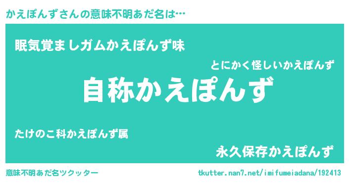 | 男性向けラノベタイトル風あだ名 | 『Re:かえぽんずから始める異世界生活』 |