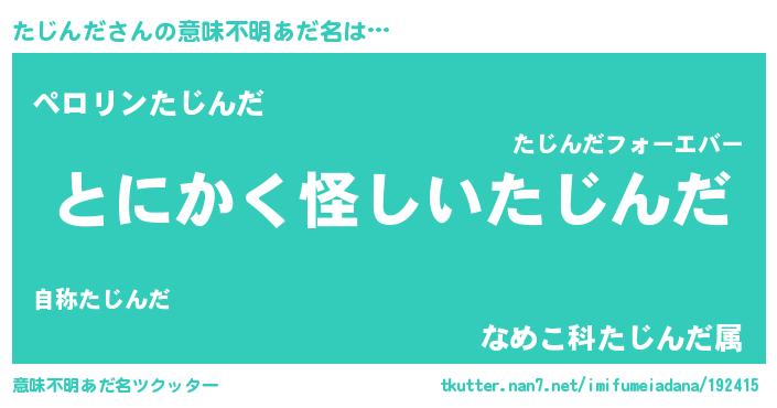 | 男性向けラノベタイトル風あだ名 | 『たじんだの嫁は女の子じゃないと思った?』 |
