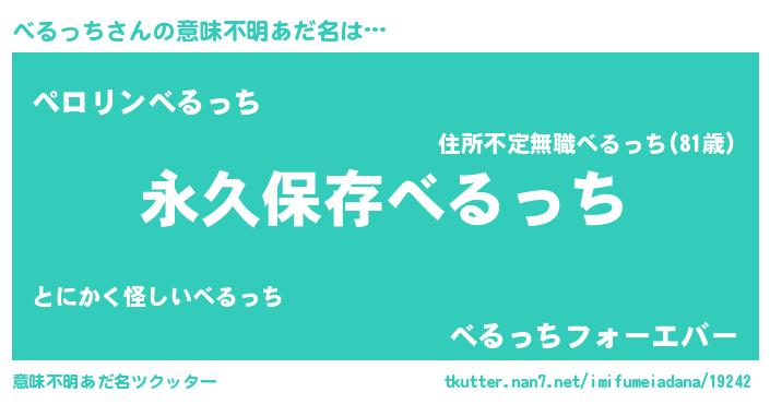 | 胡散臭い通販商品みたいなあだ名 | 『来世でも幸せになれる健康食品…その名も「べるっち」』 |
