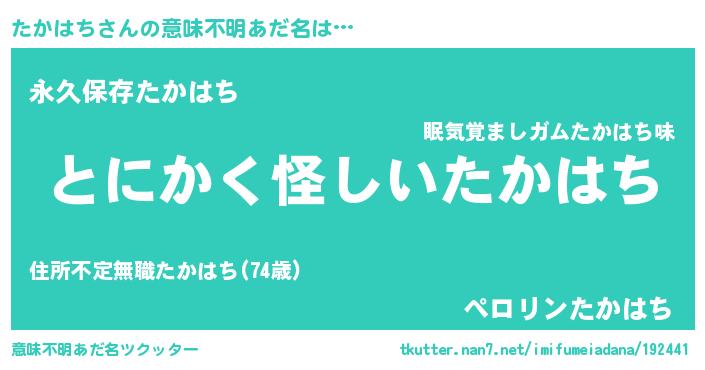 | ポケモン風あだ名 | 『ヒタカハチ』『ゼニタカ』 |