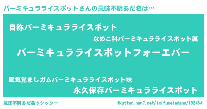 | ファンタジー風あだ名 | 『エターナルバーミキュラライスポットー』 |