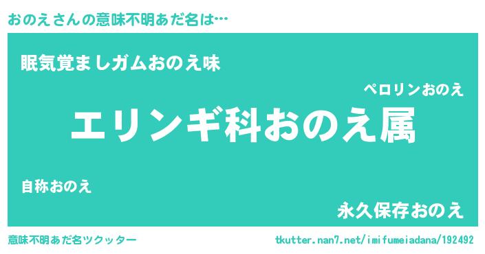 | 欧米人風あだ名 | 『トリンドルおのえ』『ダニエルおのえ』 |