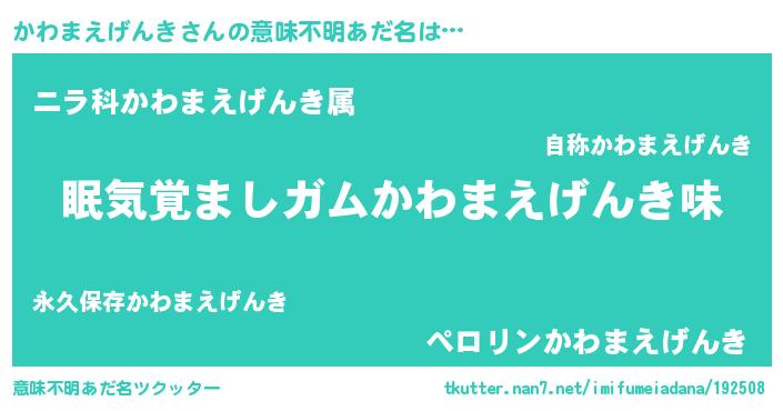 | 男性向けラノベタイトル風あだ名 | 『かわまえげんきに滅ぼされるだけの簡単なお仕事です』 |