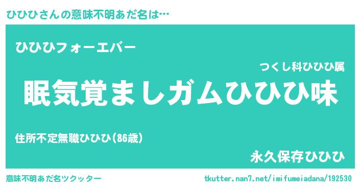| ピコ太郎風あだ名 | 『ヒヒ太郎』『ピヒ一郎』『ピコヒ郎』 |