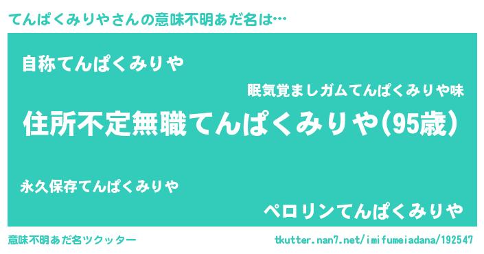 | ヘコむあだ名 | 『てんっふぃ~』『てんぱくみりや(震え声)』 |