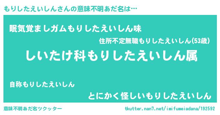 | 料理風あだ名 | 『もりしたえいしんごはん』 |