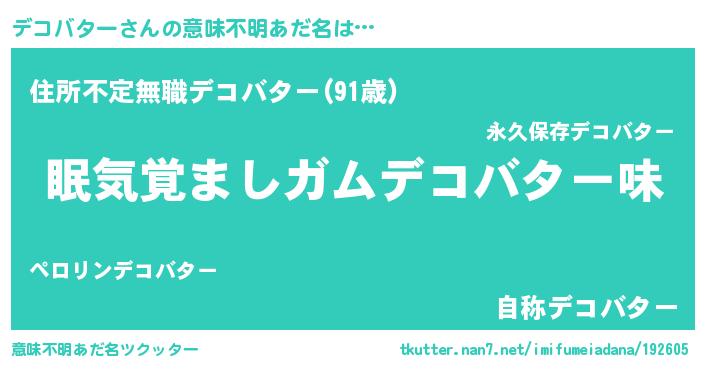 | 男性向けラノベタイトル風あだ名 | 『ノーゲーム・ノーデコバター』 |