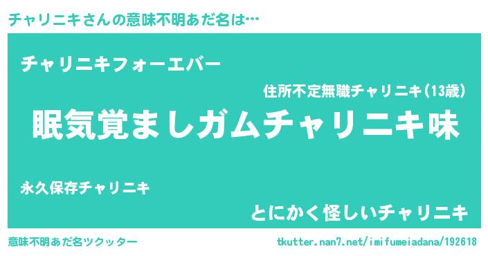 | ヒーロー風カッコイイあだ名 | 『天空の使者チャリニキ』『黄金騎士チャ』 |