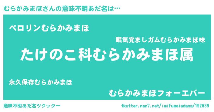 | 男性向けラノベタイトル風あだ名 | 『転生したらむらかみまほだった件』 |