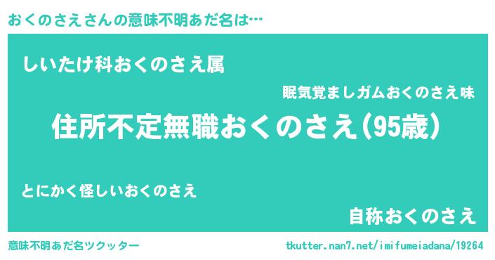 | 欧米人風あだ名 | 『アンジェラ・おくのさえ』 |