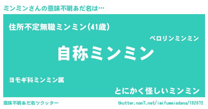 | ピコ太郎風あだ名 | 『ミン四郎』『ミコ二郎』『ミミ太郎』 |