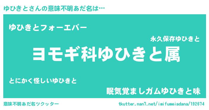 | ヒーロー風カッコイイあだ名 | 『ウルトラゆひきとマン』『ネオユヒキト』 |