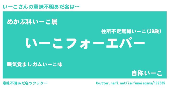 | 男性向けラノベタイトル風あだ名 | 『やはりいーこの青春ラブコメはまちがっている 』 |