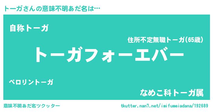 | 欧米人風あだ名 | 『トーガクリステル』『トリンドルトーガ』 |