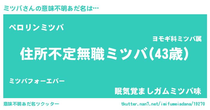 | 男性向けラノベタイトル風あだ名 | 『この素晴らしい世界にミツバを!』 |