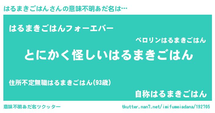| ポケモン風あだ名 | 『ヒハルマキゴハン』『ハルマダネ』 |