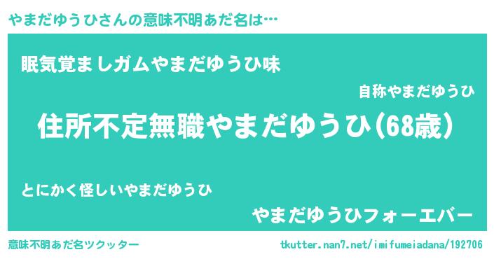 | 女子向けラノベタイトル風あだ名 | 『乙女ゲームの破滅フラグしかない悪役やまだゆうひに転生してしまった…』 |