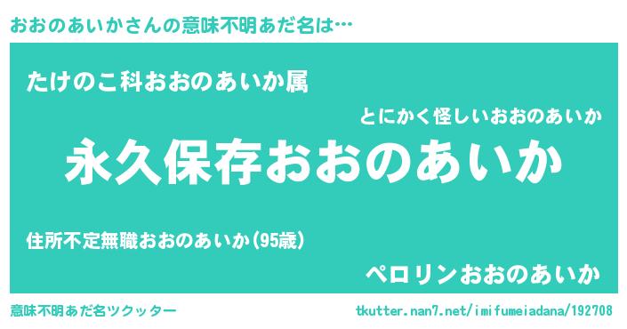 | ヘコむあだ名 | 『おおのあいか(遠い目)』『おおっふぃ~』 |