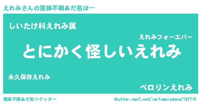| 料理風あだ名 | 『えれみの豆乳スープ』『えれみごはん』 |