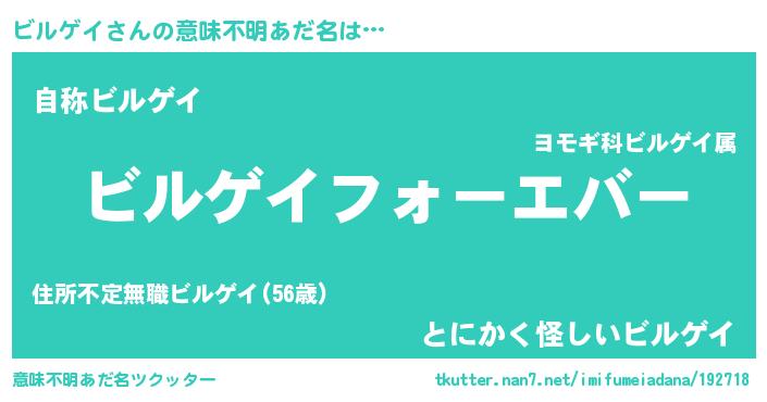 | 欧米人風あだ名 | 『ビルゲイクリステル』 |