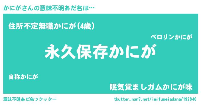 | 男性向けラノベタイトル風あだ名 | 『かにがという概念が存在しない退屈な世界 』 |