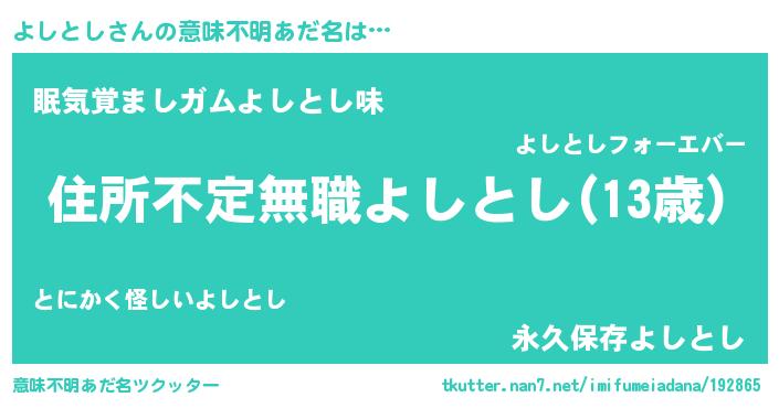 | ヘコむあだ名 | 『よしとし(笑)』『豆乳』 |