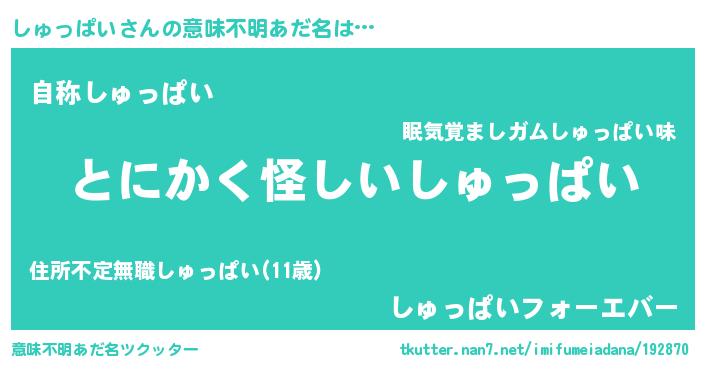 | ヒーロー風カッコイイあだ名 | 『暗黒騎士シュ』『超時空戦士シュッパイ』 |