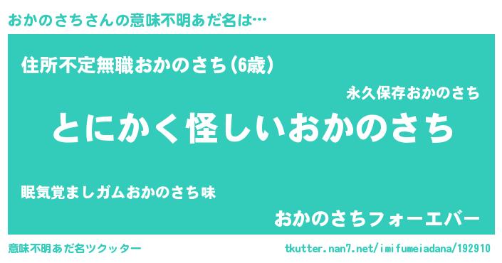 | ポケモン風あだ名 | 『オカゴンZ』『ヒオカノサチ』 |